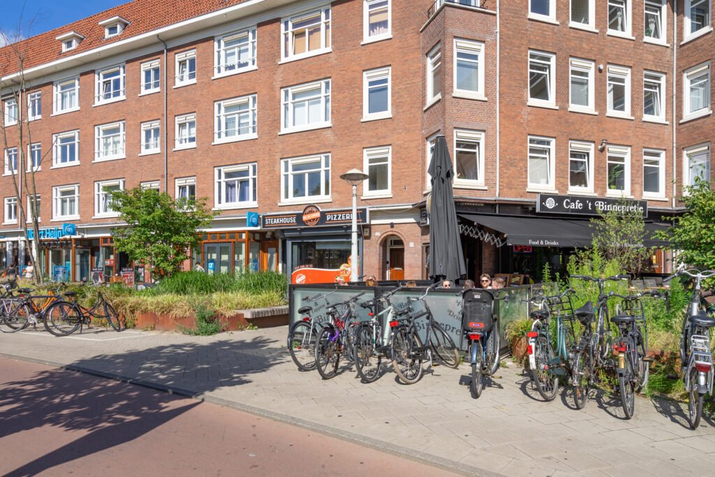 Dit appartement ligt aan de rand van het karaktervolle Westerpark, een van de oudste en mooiste stadsparken van Amsterdam. Hier woon je omringd door groen, terwijl het bruisende stadsleven zich letterlijk om de hoek afspeelt. Binnen enkele minuten ben je met de auto op de ring A10, en ook het centrum van Amsterdam is snel en makkelijk bereikbaar.